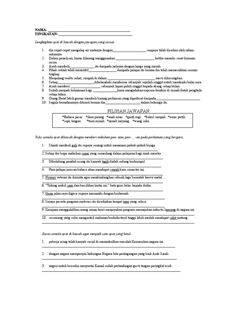 Jul 21 2021 Teknik menjawab soalan kertas 1 penulisan bahagian a bahasa melayu spm 2021 tidak berformat untuk pelajar tingkatan 4 dan 5 subjek bahasa melayu. Bahasa Melayu BM PT3 Tingkatan 3. Baca versi flipbook dari SET 1 Koleksi Soalan dan Skema Jawapan Peralihan.